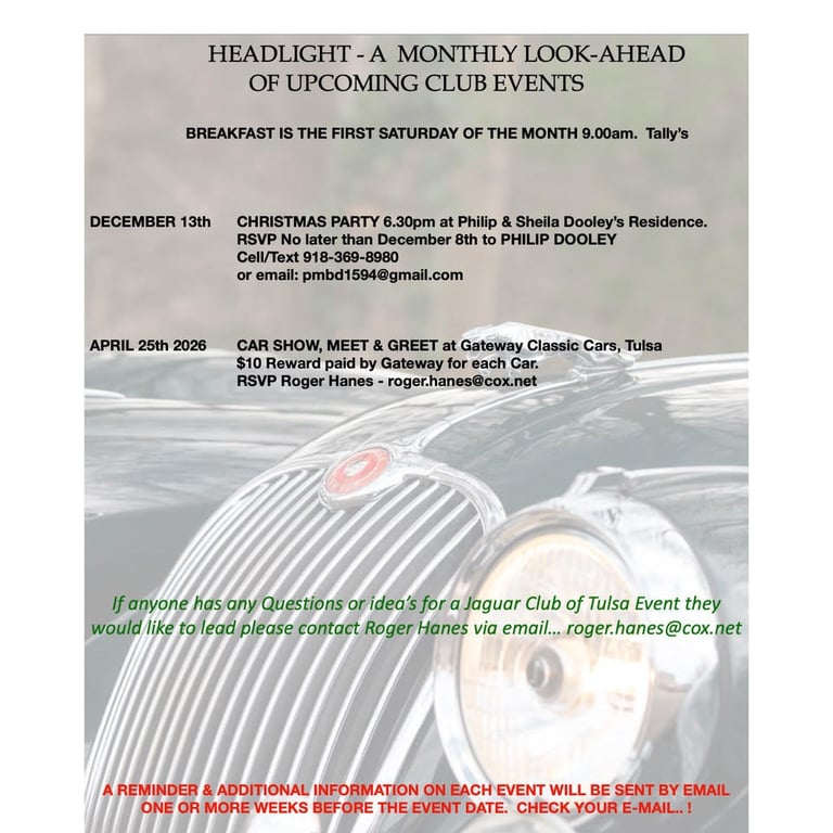 You are invited to join us (Jaguar club members) for our fist Saturday Breakfast!