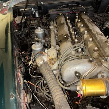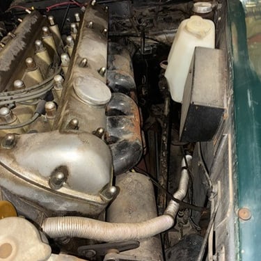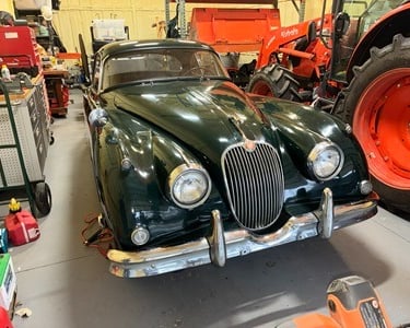 1958 Jaguar XK 150 FHC, (offered By the owner and Jaguar club of Tulsa Member) This Jaguar was purchased in the early 1990’s out of a warehouse that used to be located on the current site of the Lowes at 15th and Yale. When purchased, it did not have an engine. John, with Jaguar Services, did a full engine rebuild on an engine which was installed and the car ran and drove well in the 90’s. Over time, the car sat and the master cylinders for the clutch and brakes do not function now. The engine will start and still runs well. The engine probably has 40-50 miles on it. The car needs a new paint job. The headliner is missing. The rear window chrome is missing. Otherwise, the car is complete. The interior was installed new and is still in good shape. The car is a great candidate for a restoration. Asking $38,000